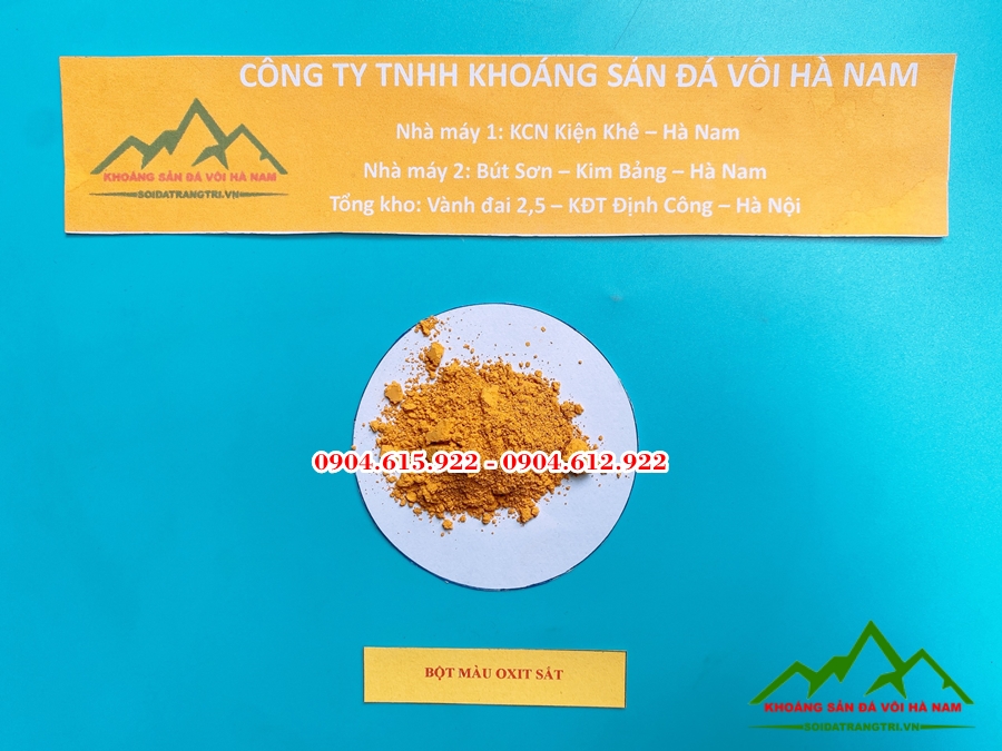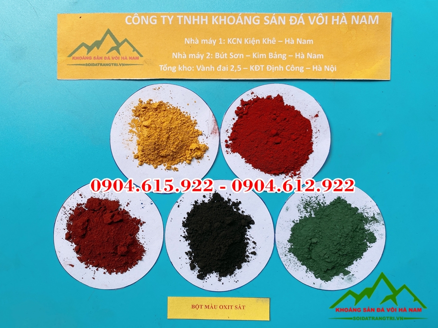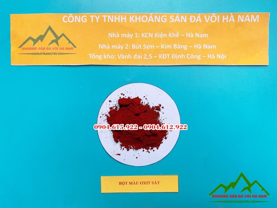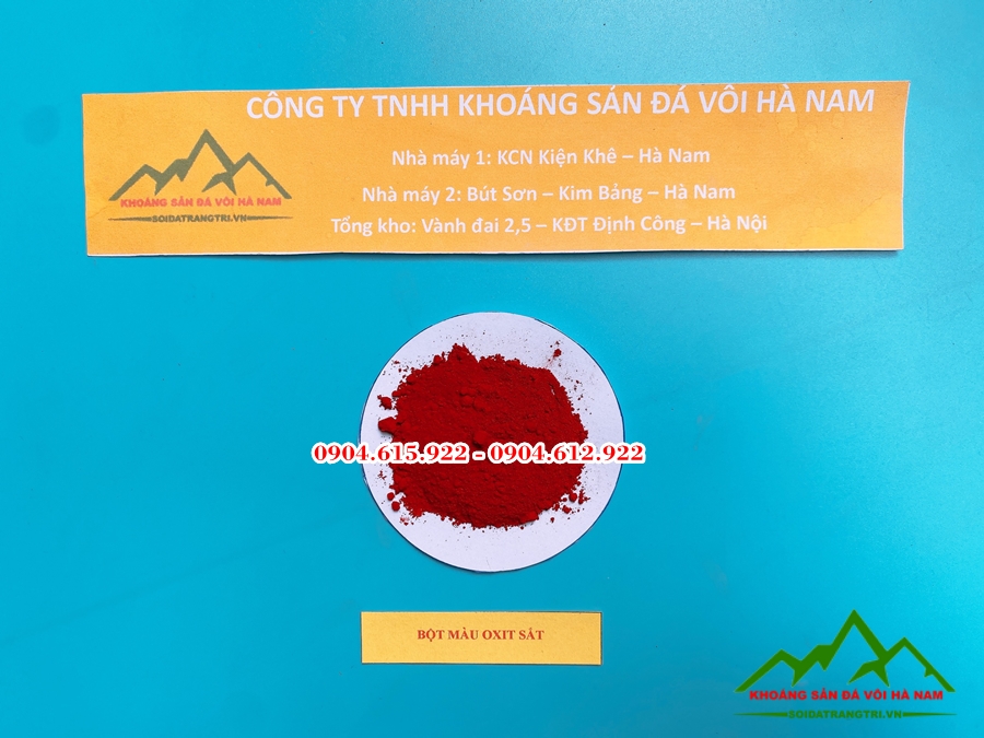 Công ty TNHH Khoáng Sản Đá Vôi Hà Nam chuyên nhập khẩu và phân phối sản phẩm Bột màu oxit sắt chất lượng cao, nguồn gốc rõ ràng. Liên hệ trực tiếp Hotline: 0904.615.922 (SMS/Zalo/Skype) để được tư vấn chi tiết nhất.