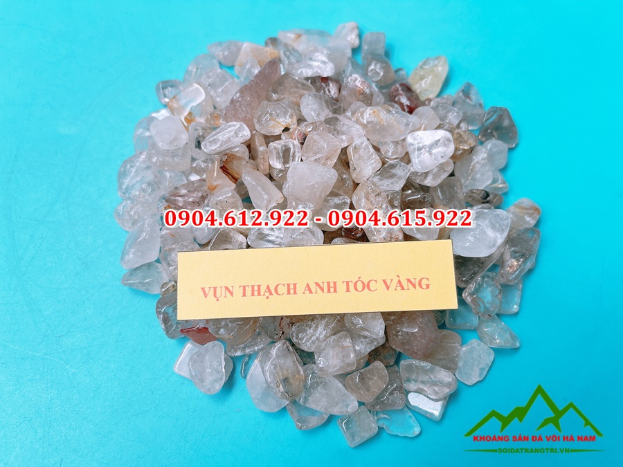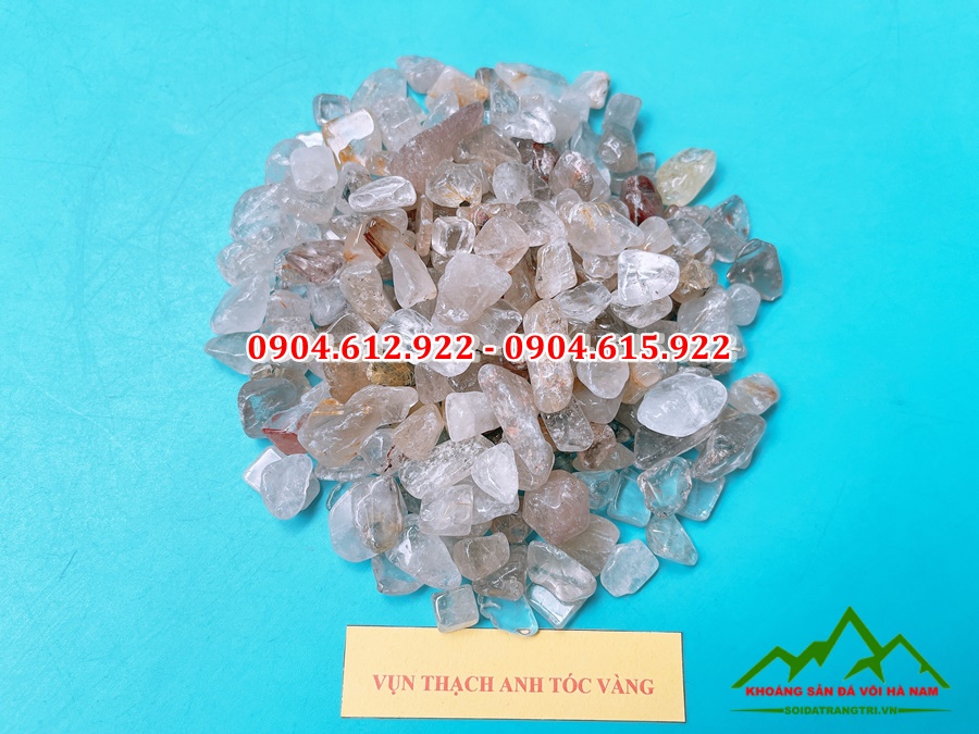 Vụn thạch anh tóc vàng là loại đá thạch anh thô tự nhiên đã được đập nhỏ, kích cỡ chỉ từ 1cm đến 2cm. Sau đó, chúng sẽ được mài nhẵn và đánh bóng tất cả các góc cạnh để trông lấp lánh hơn. Loại đá này thường sẽ có rất nhiều màu sắc khác nhau. Mỗi một màu sắc chúng tượng trưng cho một mệnh trong thuyết âm dương ngũ hành của người Phương Đông. Tùy vào mệnh của mỗi người mà sử dụng thạch anh sao cho phù hợp, với mệnh của từng người.